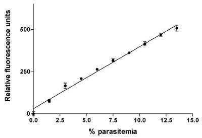 荧光增强可以通过核酸的存在来测量,核酸与寄生虫血症水平呈线性相关。