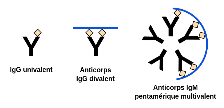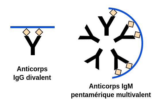 一个高级avidite我们可以compenser一faible affinite.我的朋友图3, l'IgM pentamérique一个affinité加上不可能的igg,它是一个avidité加上élevée加上igg的多价性。