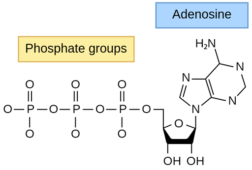 在ATP通过反应合成合成或ATP合酶合成过程中,能量安全地作为化学能存储在ATP的结构中,特别是在高能磷酸酯键中。磷酸基团中的负电荷相互排斥,需要大量能量才能将它们结合在一起。当这些高能键断裂时,该能量通过ATP水解释放。