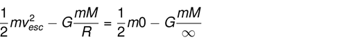 Obwohl die Gravitationskraft unendlich weit wirkt, kann sich ein Gegenstand dieser Kraft entziehen. Die minimalste Geschwindigkeit, die ein Gegenstand erreichen muss, um sich der Gravitationskraft eines massiven Körpers zu entziehen, wird Fluchtgeschwindigkeit genannt. Sie kann berechnet werden, indem die Energieerhaltung angewendet wird und die Gesamtenergie des Gegenstandes bei einer ursprünglichen Distanz R vom massiven Körper mit der Energie gleichgesetzt wird, die der Gegenstand bei 'Unendlichkeit' erreicht (mit einer Geschwindigkeit v=0):