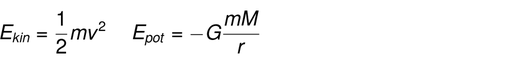 嗯herauszufinden, ob西奇静脉Gegenstand Gravi化生tationsfeld eines anderen Gegenstandes auf einer gebundenen oder ungebundenen Umlaufbahn befindet, ist sehr nützlich, das Energieerhaltungsgesetz zu betrachten. Die kinetische Energie Ekinund die potentielle Energie Epoteines Gegenstandes mit der Masse m im Gravitationsfeld der Masse M lauten: