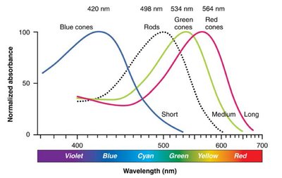 Weakly photosensitive, chromatic, cone-shaped neurons in the fovea of the retina that detect bright light. They are used in day time vision(photopic vision)and have high spatial acuity.