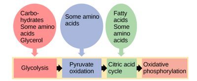 Sukkerarter,Eller Kulhydrater,Er Ikke Cellens Eneste Energikilde;Den KanOgsåKatabolisereFedt Og别人。det ertilfældet,在de Kataboliske Veje foraminosyrer.(蛋白质是Byngesten)OGFedtsyrer.(Byggesten Til Fedt)Førestil甘甘油埃尔Krebs'Cyklus.(SENedenstående比赛)。