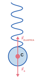 figura 1:La Forza Elastica(forza di contatto)e Peso(forza a distanza)di una una massa su una molla。