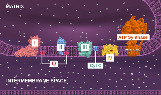 图1:参与电子含量的线晶体内膜:综合物I(i),聚合物II(II),综合物III(III),综合IV(IV),泛素醌(Q),细胞色素C(Cytc)和ATP合并。在张张图中,线血体基于在上面,空间隙在内的动态内膜下载。