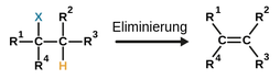 Das Hauptmerkmal von Eliminierungsreaktionen in der organischen Chemie ist, dass zwei Substituenten vom Molekül entfernt werden und eine Doppelbindung ausgebildet wird. Oft ist einer der Substituenten ein Wasserstoffatom (H+).
