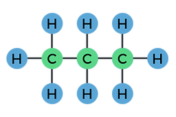 Figura 1:Estructura de los hidrocarburos metano, propano y 1-buteno.