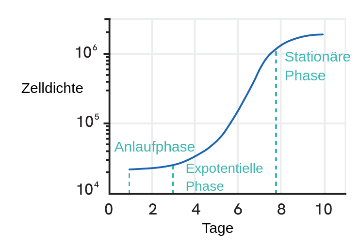 Abbildung 1:Typische Wachstumskurve kultivierter Zellen