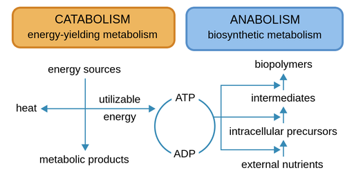代謝経路の主な関係は異化反応はエネルギー,つまり三磷酸腺苷を生成するということです。このエネルギーは同化反応で使用されます。