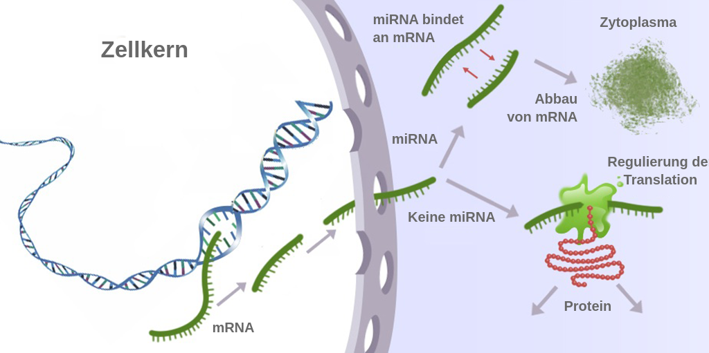 Aufgrund ihrer Funktion in der post-translationalen Genregulation, spielen miRNAs eine wichtige Rolle in der Entwicklung. Sie wirken wie Schalter, die in der Lage sind dieGenexpressionverschiedener Gene gleichzeitig herunterzufahren. miRNAs spielen ebenfalls eine Rolle in derKrebsentwicklung. Oft haben Krebszellen eine veränderte miRNA-Expression, die ihnen erlaubt, unkontrolliert zu proliferieren.