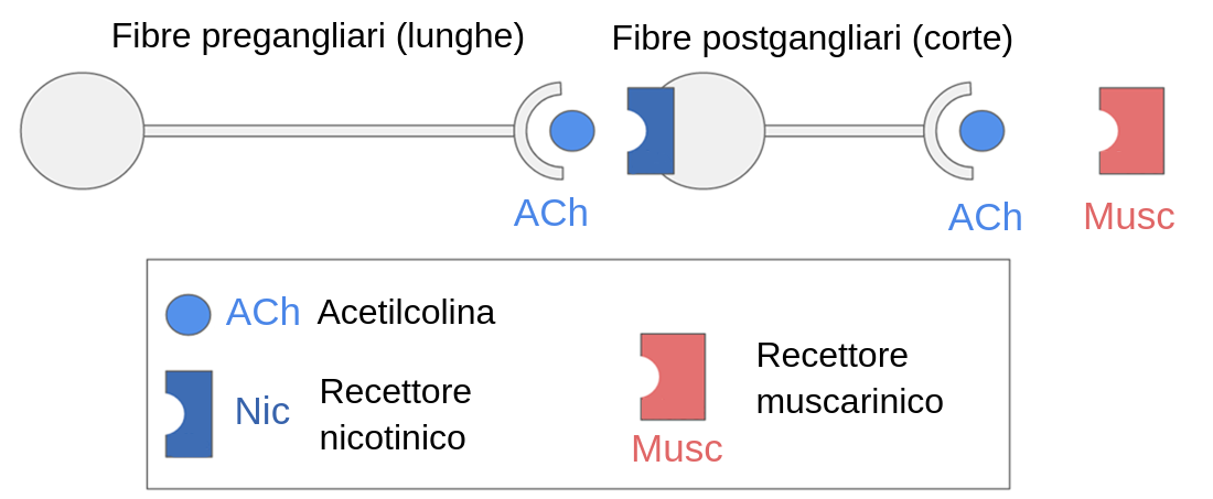 èChopostoda Fiber Pregangliari e Postganglari,Entrambe Collegate Nei Gangli。Le Fiber Preganglari Sono lunghe,Mentre Quelle Postganglari Sono Corte(Figura 1)。