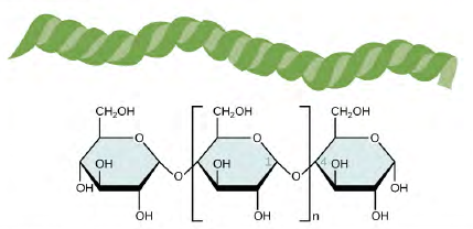 图1:淀粉酶ER sammensat afuforgrenedekæderafaf glukosemonomerer forbundetmedα1,4glykosidbindinger。