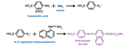 물샘플질산농도를측정하기위한표준방법은자동화카드뮴환원법이다。이방법에서,상기불안정한질산카드뮴이온의존재하에서아질산염으로환원된다。,아그리고질산으로디아조화술파닐아미드및아조염료가밝은색을형성하는N -(1 -나프틸)乙二胺염산염과결합된다。색의강도물샘플상관물질소의농도는제조。