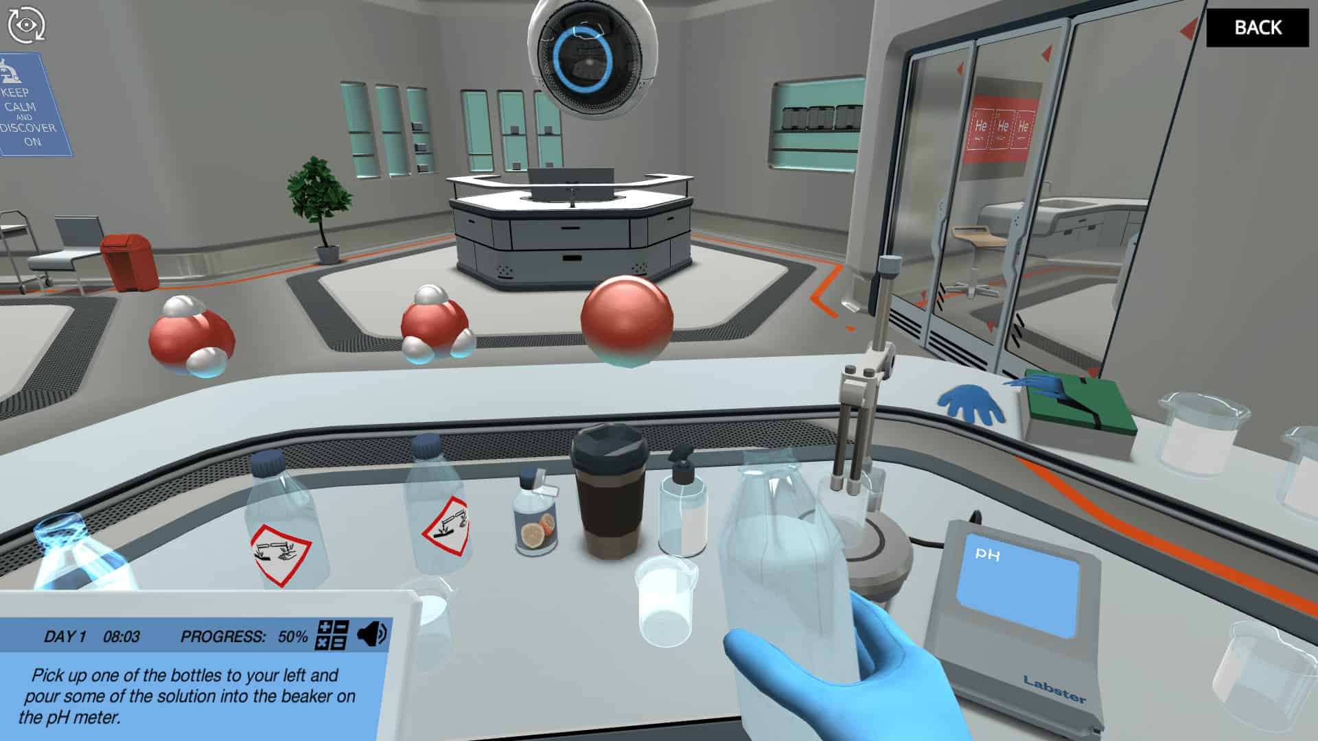 小心!你在外产上发现了一个湖 - 但它是酸性还是基本?你肯定会知道这一点!你有机会试验强酸和基地,以弄清楚如何达到“中性”pH。