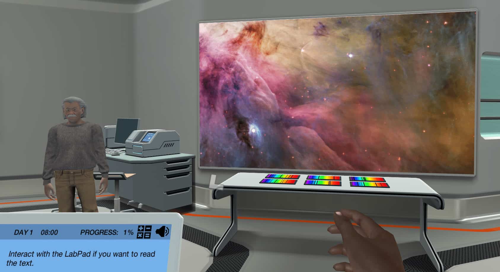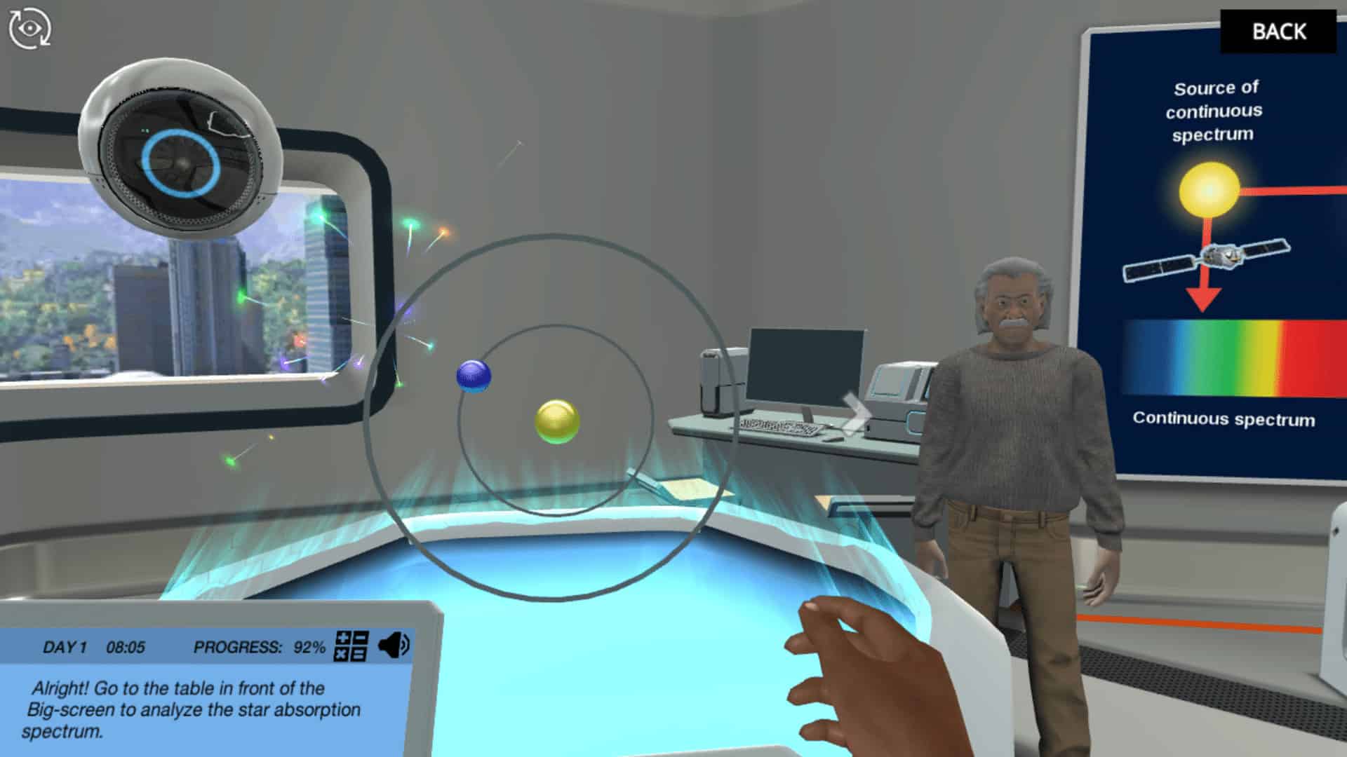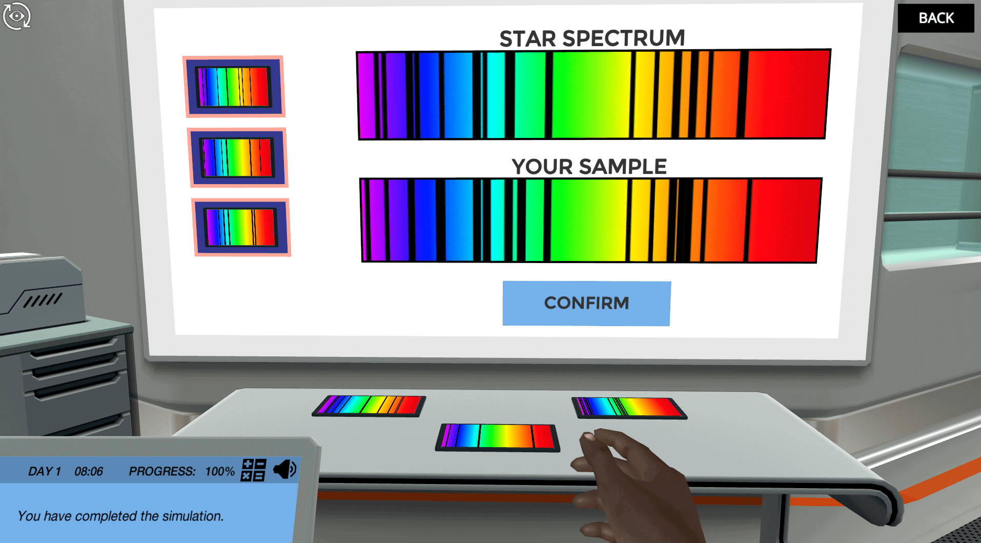 在一个吸引人的小游戏中,你可以与电子互动,帮助原子吸收和释放能量。有了之前学习活动的知识,您将使用新发现恒星的吸收光谱来分析它是由什么元素组成的。