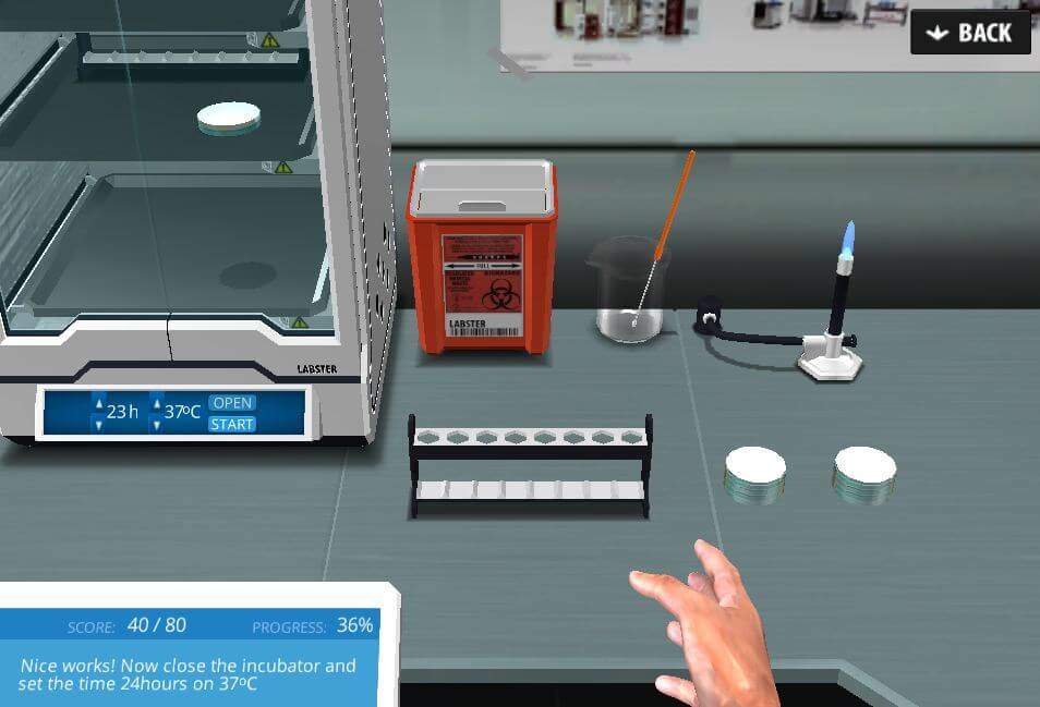 在细菌分离模拟中,您将调查禽肉被一种对普通抗生素具有耐药性的危险菌株污染的原因。从养鸡场采集样本后,您将在虚拟实验室中工作,以分离不同物种之间的单个致命细菌菌落。要做到这一点,你将学习如何在无菌条件下工作,你将能够实践和完善你的平板划线技术。