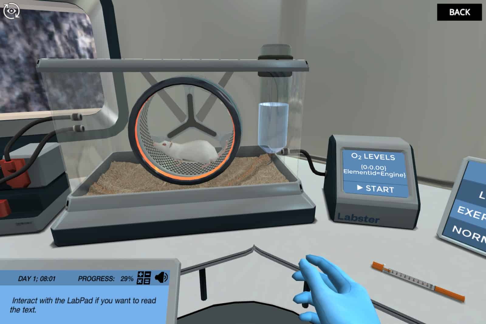 发现呼吸测量的内部工作原理,并学习一些整洁的实验室技术!将微芯片注射到老鼠身上,就可以分析不同环境条件下老鼠体内的氧含量、血糖含量、乳酸含量。不过不要担心会伤害到老鼠!虚拟模拟的众多好处之一是,你可以在实验过程中获得所需的所有经验和数据,而不会伤害任何动物!