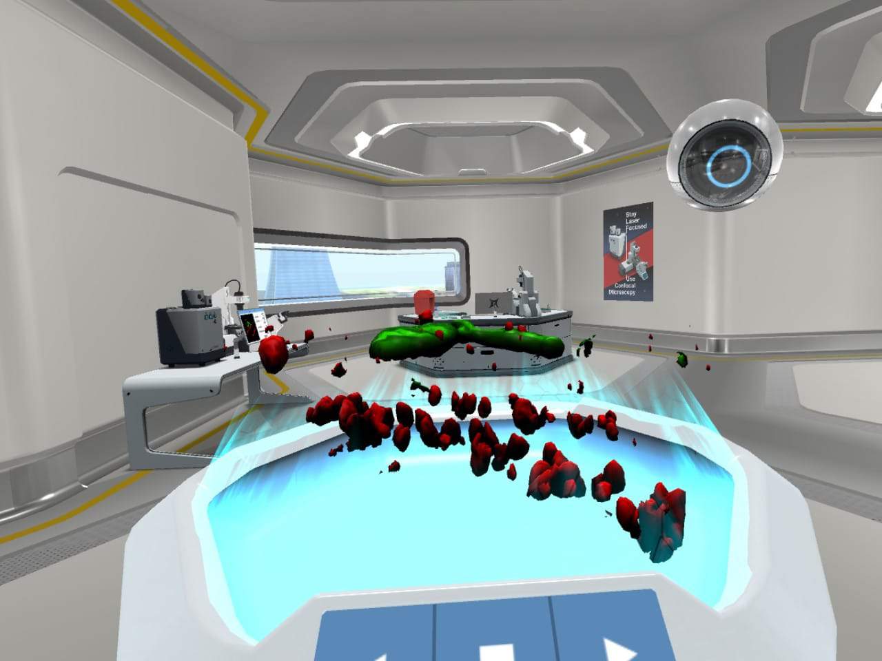 In the Confocal Microscopy lab, you’ll be able to look inside a confocal microscope. Follow the lightpath along the mirrors and through the pinhole, and you’ll soon learn how the powerful light of a laser is used to scan a sample of a single layer. See how the pinhole contributes to the formation of razor-sharp fluorescent images.
