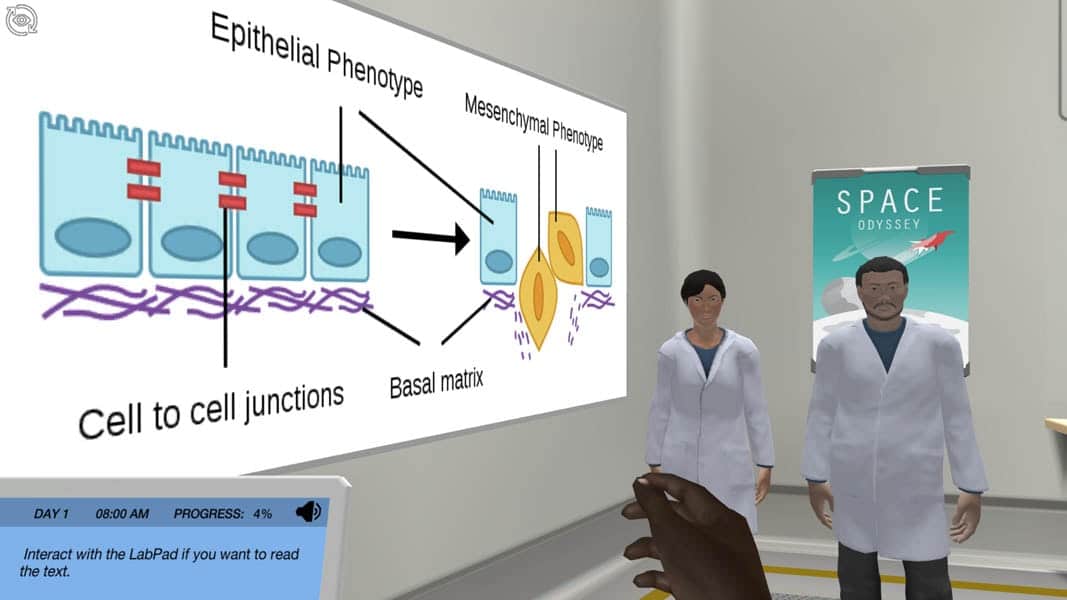 一旦您了解了EMT的分子标志,您将能够潜入真核细胞,以了解CRISPR-CAS9技术如何在分子水平上起作用。然后,您将通过解决有趣的难题来学习设计CRISPR-CAS9组件之一。最后,您将选择目标基因来淘汰,您的虚拟实验室助理One博士将帮助您完成免疫染色过程的最后一部分,以便您可以直接评估结果。