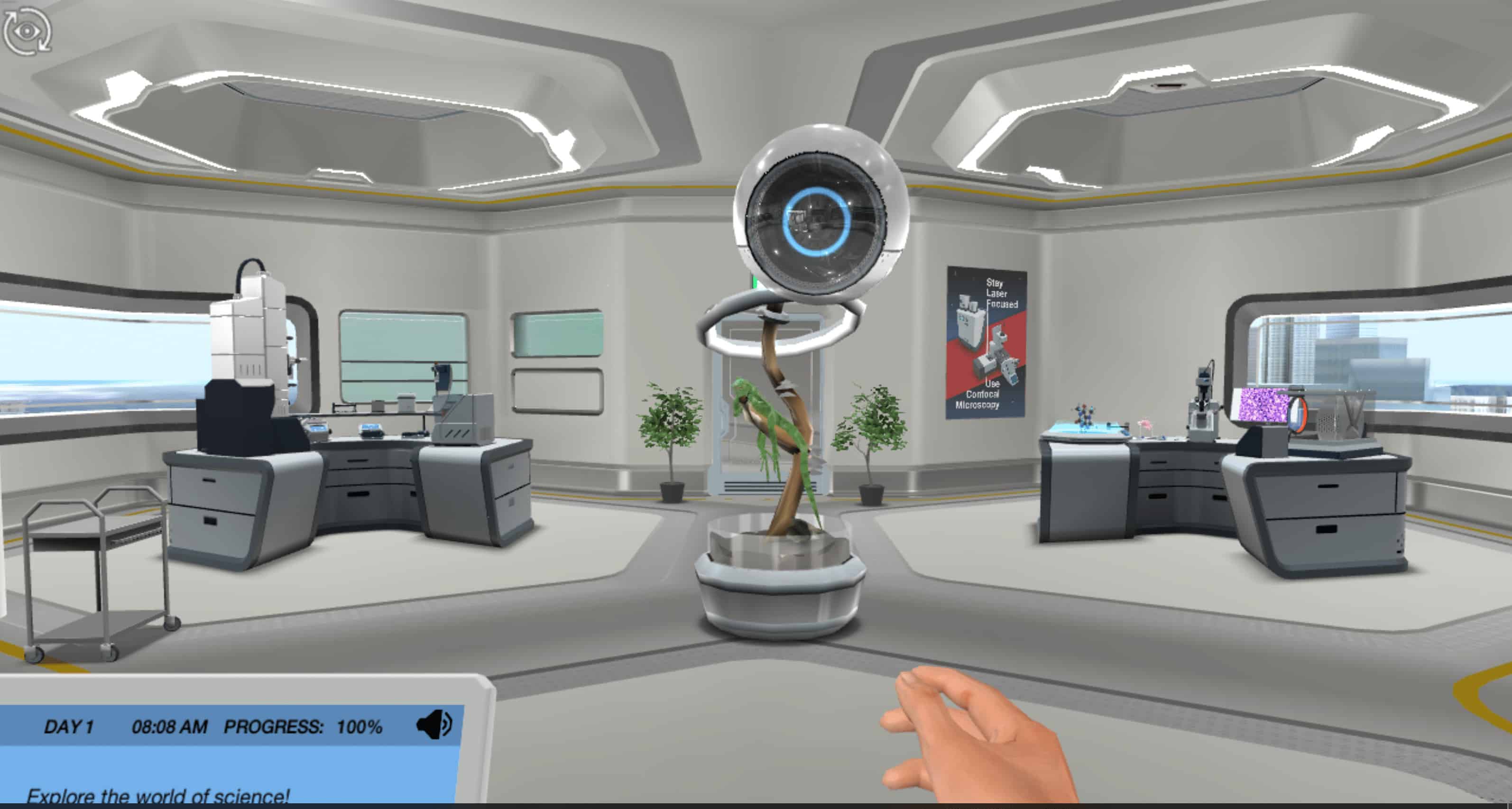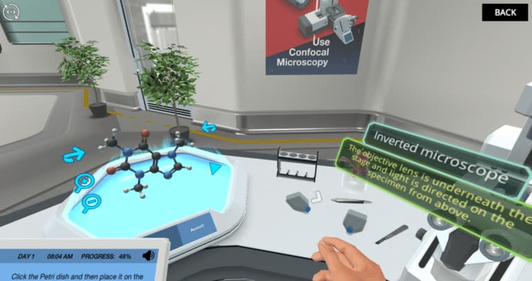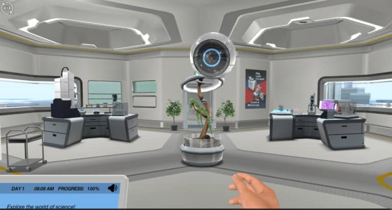 At the end of this demo, you will share your findings with Dr. One, and then you can continue to explore the virtual lab. Are ready to take a leap into the virtual world?