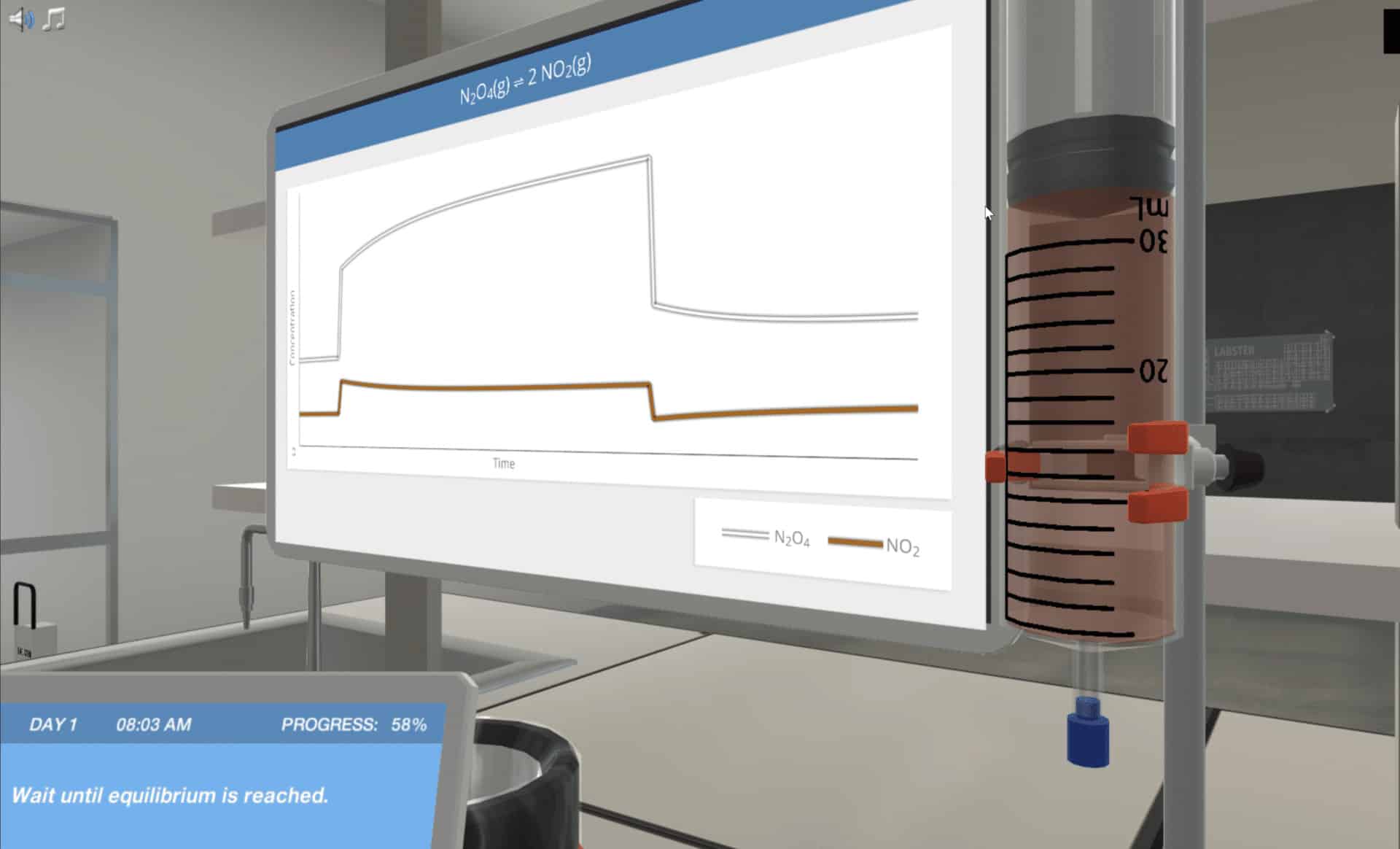 在化学中,存在几种不同类型的均衡:热力学平衡,扩散平衡,热平衡等等。在均衡模拟中,您将了解一般化学均衡,帮助着名的科学家来防止全球饥荒。您将学习如何影响和预测实验室可逆反应的方向性。