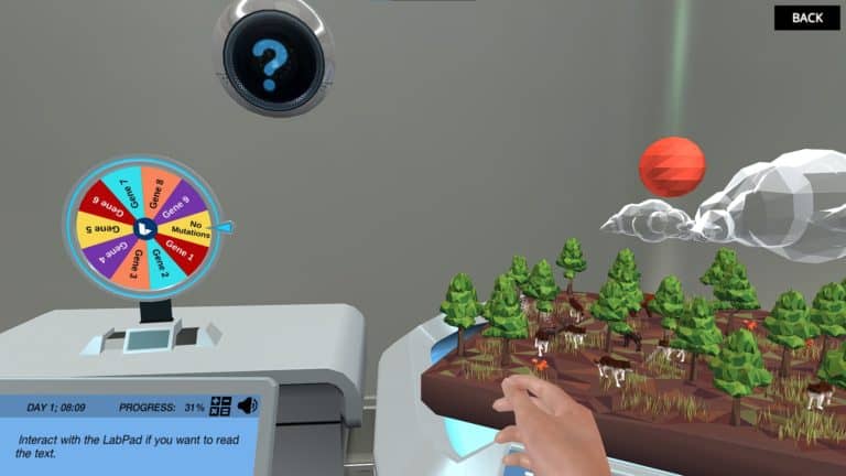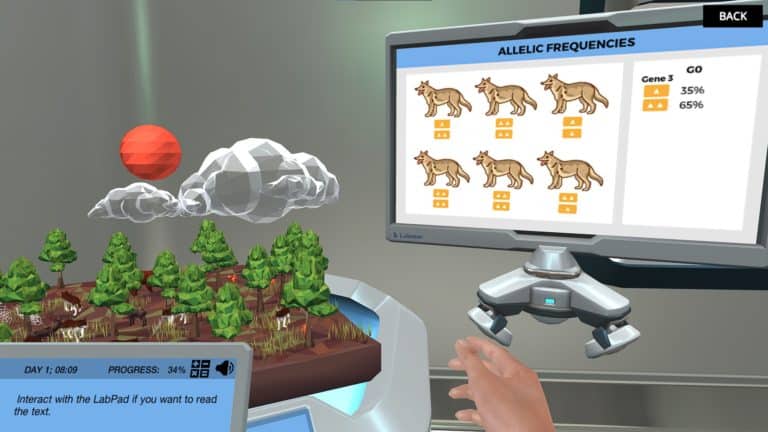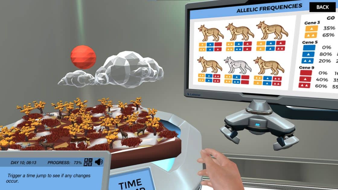 Evolution takes place over millions of years so experimenting with genetic information is practically impossible! In the virtual lab, you can time jump your way through thousands of years at the interactive holotable. Observe the impact of the random mutations you make in an organism’s DNA. Using Hardy-Weinberg theory, you will predict the genetic profile of your colony. Discover how your creatures look and behave after millions of years have passed. Changes to the environment, from a temperate forest to a snowy tundra, will also play a role in the survival of the fittest.