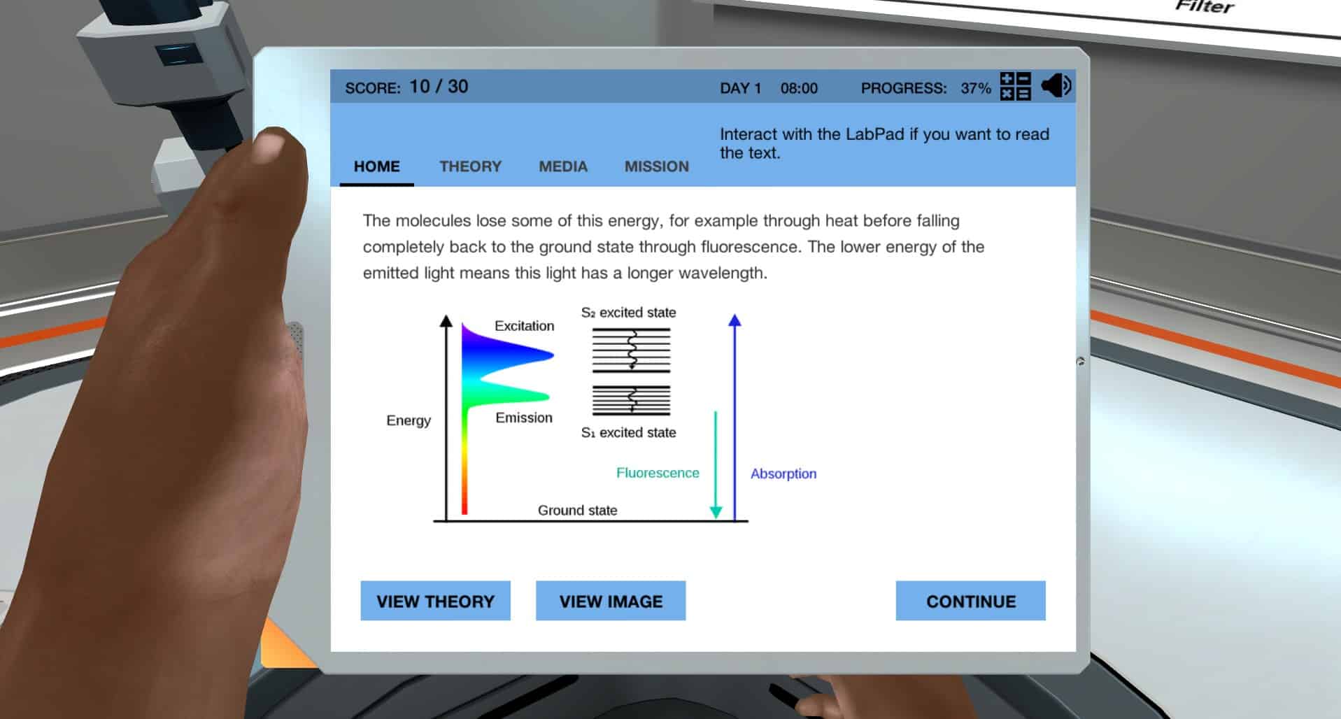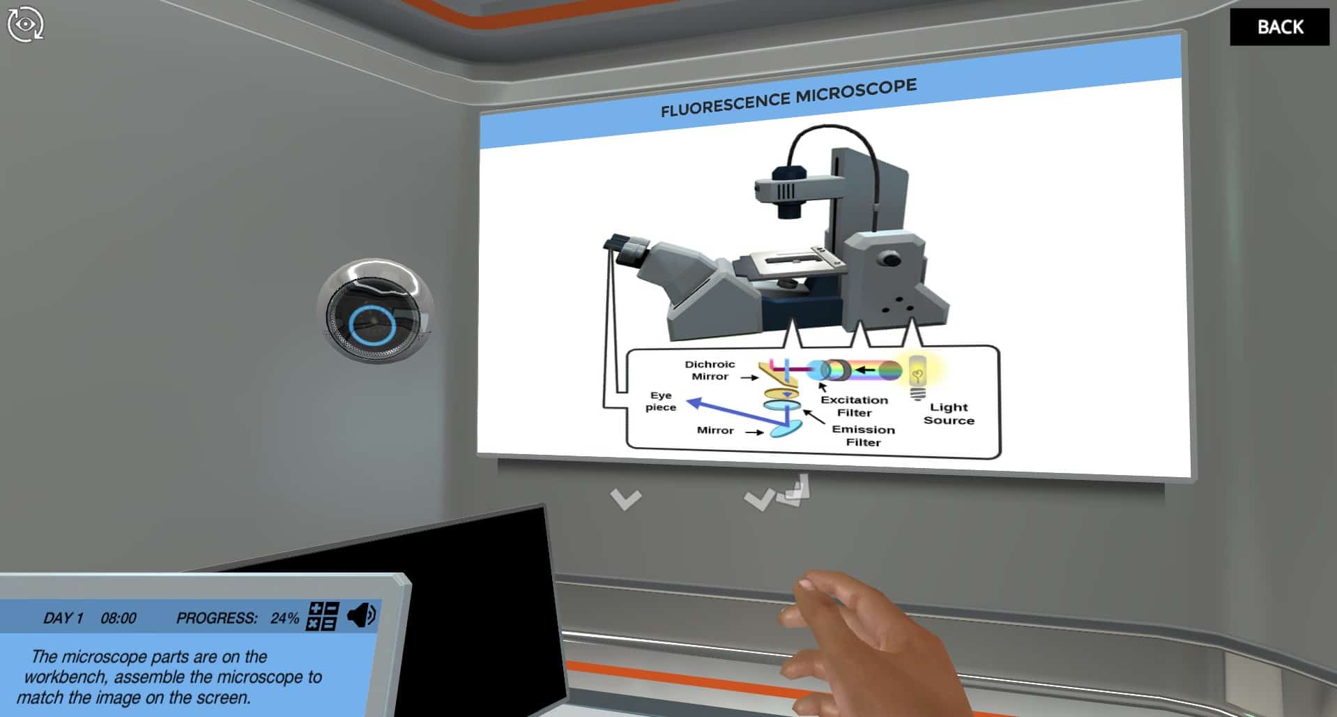 组装荧光显微镜并发现关键组件如何帮助创建高对比度图像。在此模拟中,您将学习如何使用荧光显微镜来分析肠组织样本。您将发现荧光是什么以及荧光显微镜在生物学中的应用和局限性。样品已经为您准备,您的使命是确定肠中细胞是否感染病毒。