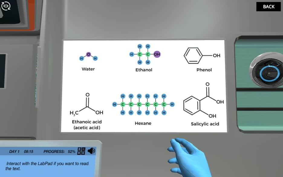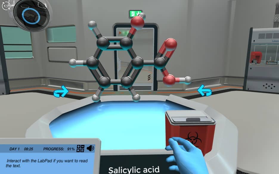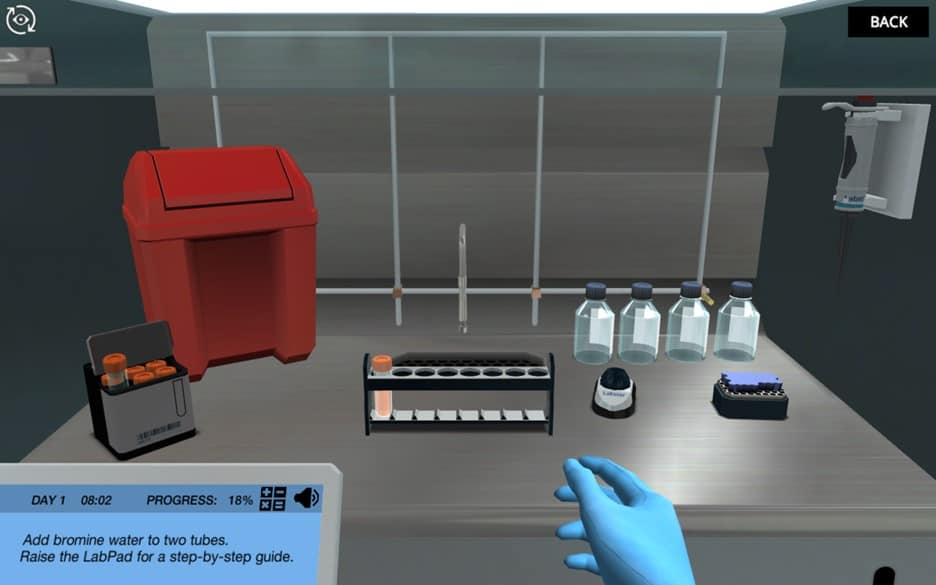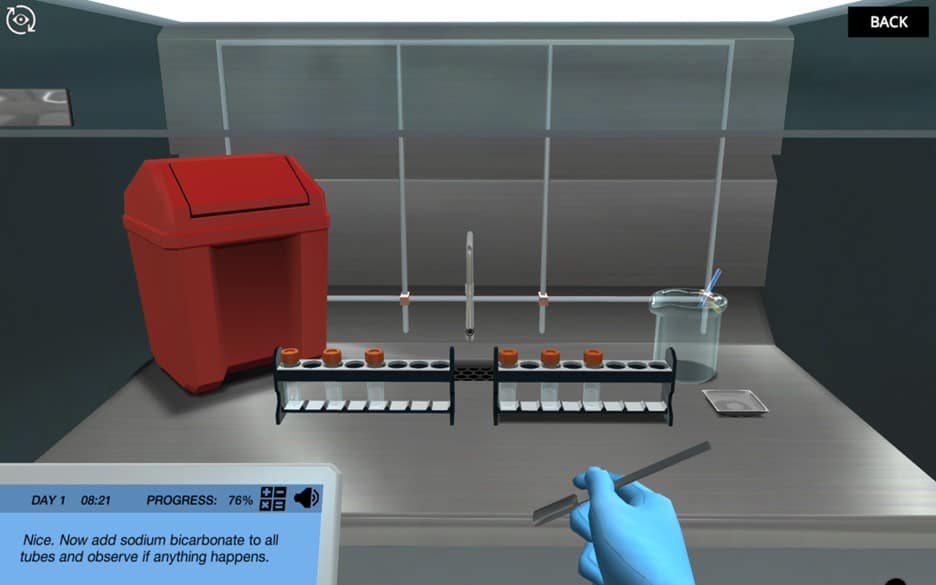 在实验室里,你和一号博士合作,他会支持和测试你的任务。穿好衣服去实验室后,你就直接开始了第一个实验:溴测试。在这里,你需要向Dr. One表明,当涉及到简单的化学测试时,你是舒适的-这样产生的结果在你的主要任务可以信任!