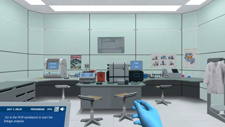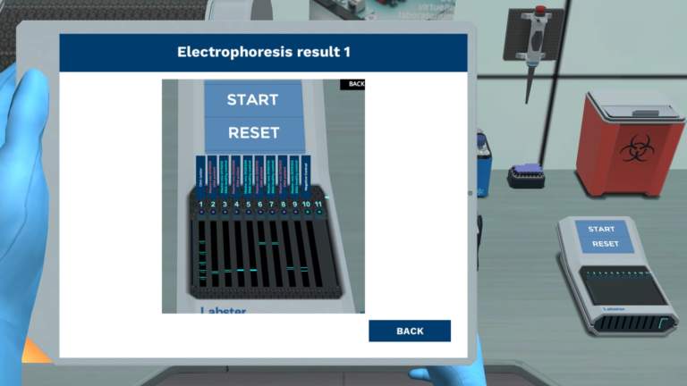 接下来,您将到达实验室开始实验。您将使用靠近BRCA1和BRCA2基因的四个微卫星标记开始进行链接分析。然后,您将执行PCR来扩增微卫星标记,并通过使用凝胶电泳来解释结果。