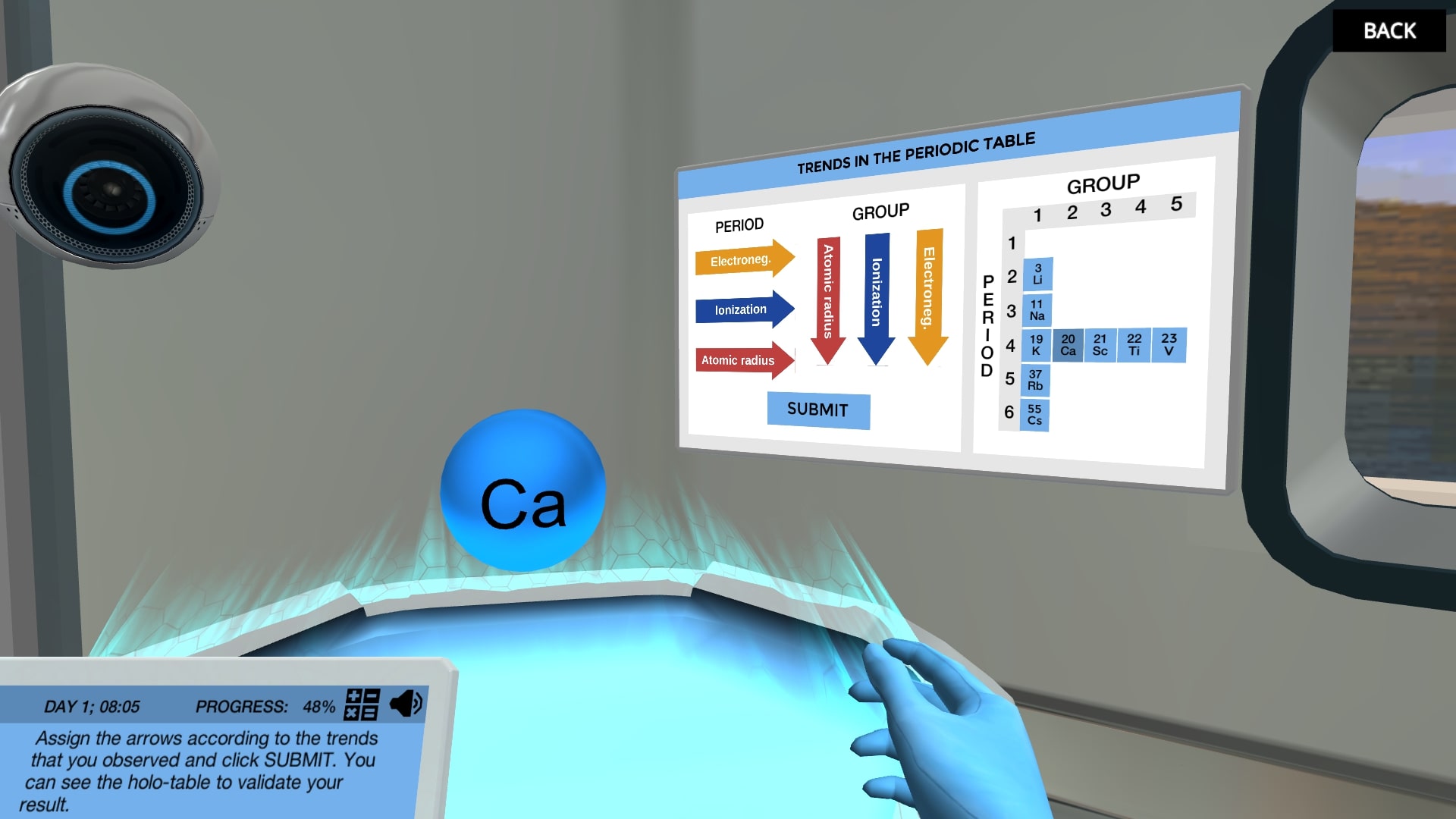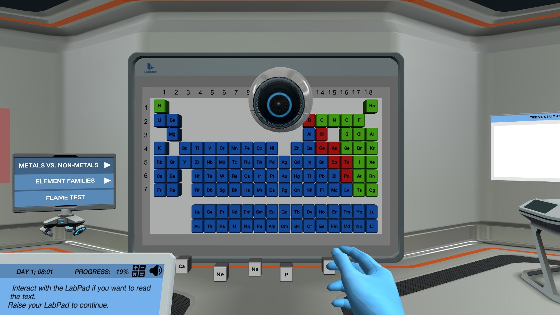 将所需要的元素在表to observe their atomic properties and discover the main trends of the groups and periods. There are surprisingly many atomic properties for which trends can be observed via the periodic table. You will move on to the virtual holotable, where you will investigate these trends and deduct how they behave when you move within and between periods and groups of the table. You may need to use your knowledge about element classes as well to get the full overview.