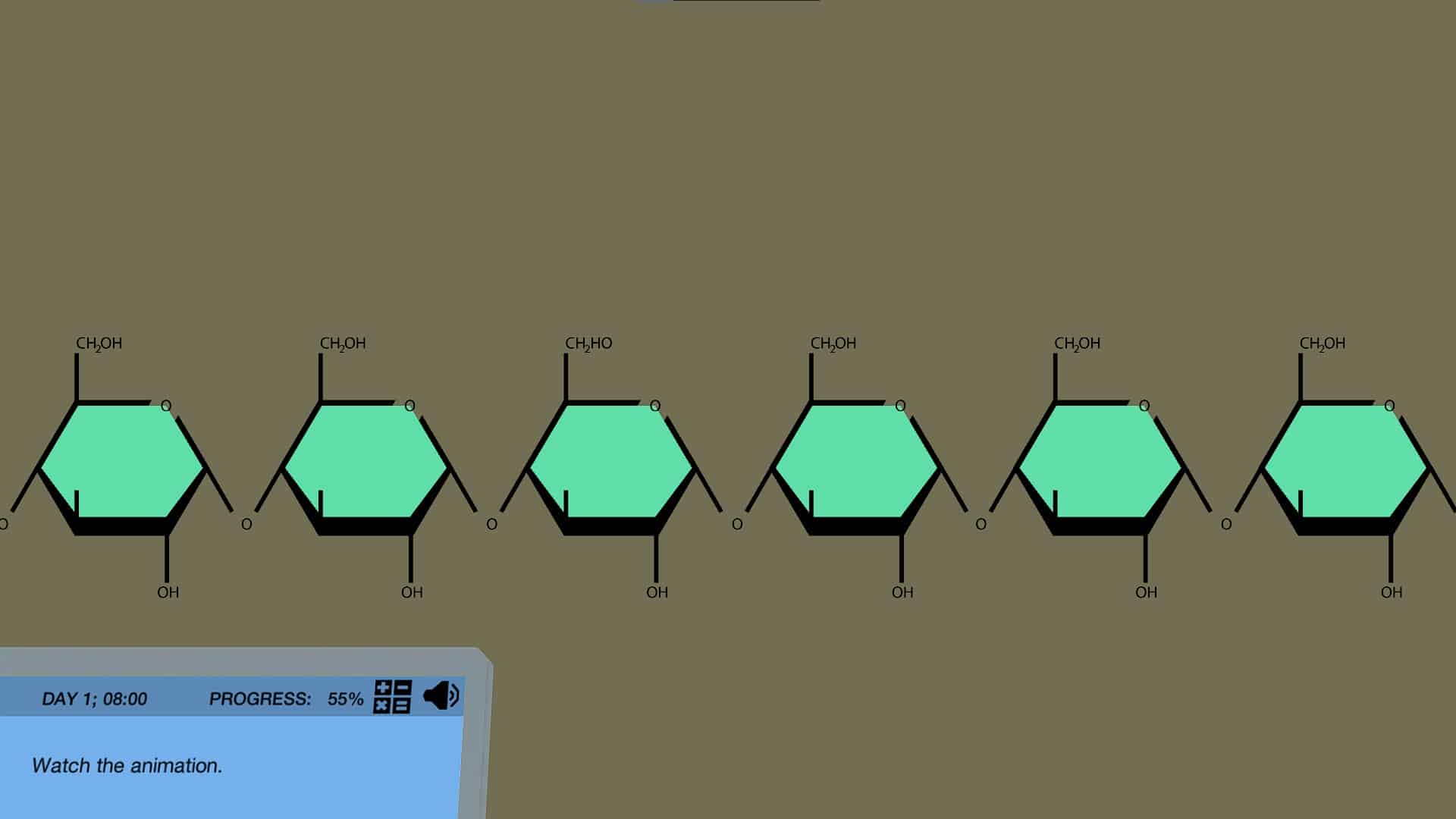 Begin by jumping inside a potato to initiate an animation that explains the chemical building blocks that make up a complex carbohydrates. Identify the differences between alpha and beta glucose. Learn how a polymer made of simple carbohydrates, such as glucose, can form complex carbohydrates, such as starch. Compare the internal structures of potatoes and broccoli to discover how the structures of starch and cellulose differ despite them both being made from glucose polymer chains. Finally, return to the lab to perform an experiment which will test for the presence of these complex carbohydrates.