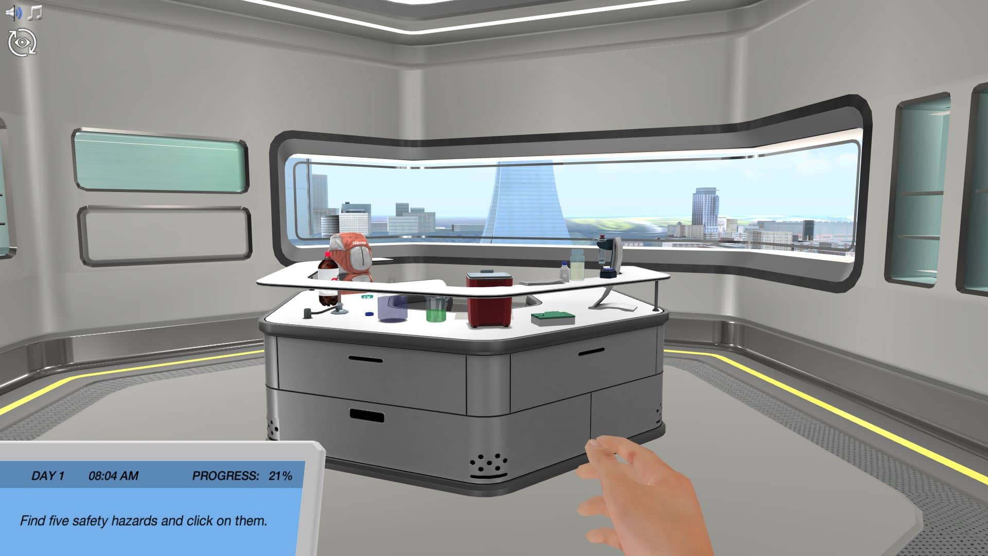 安全第一!当你进入实验室时,一定要注意潜在的危险。在这个模拟中,您将通过识别和消除实验室中的危险来创造一个整洁和安全的工作环境。我们会向你介绍实验室的安全规则和安全设备,如果你和你的同事在真正的实验室里出了问题,这将会对你和你的同事有帮助。