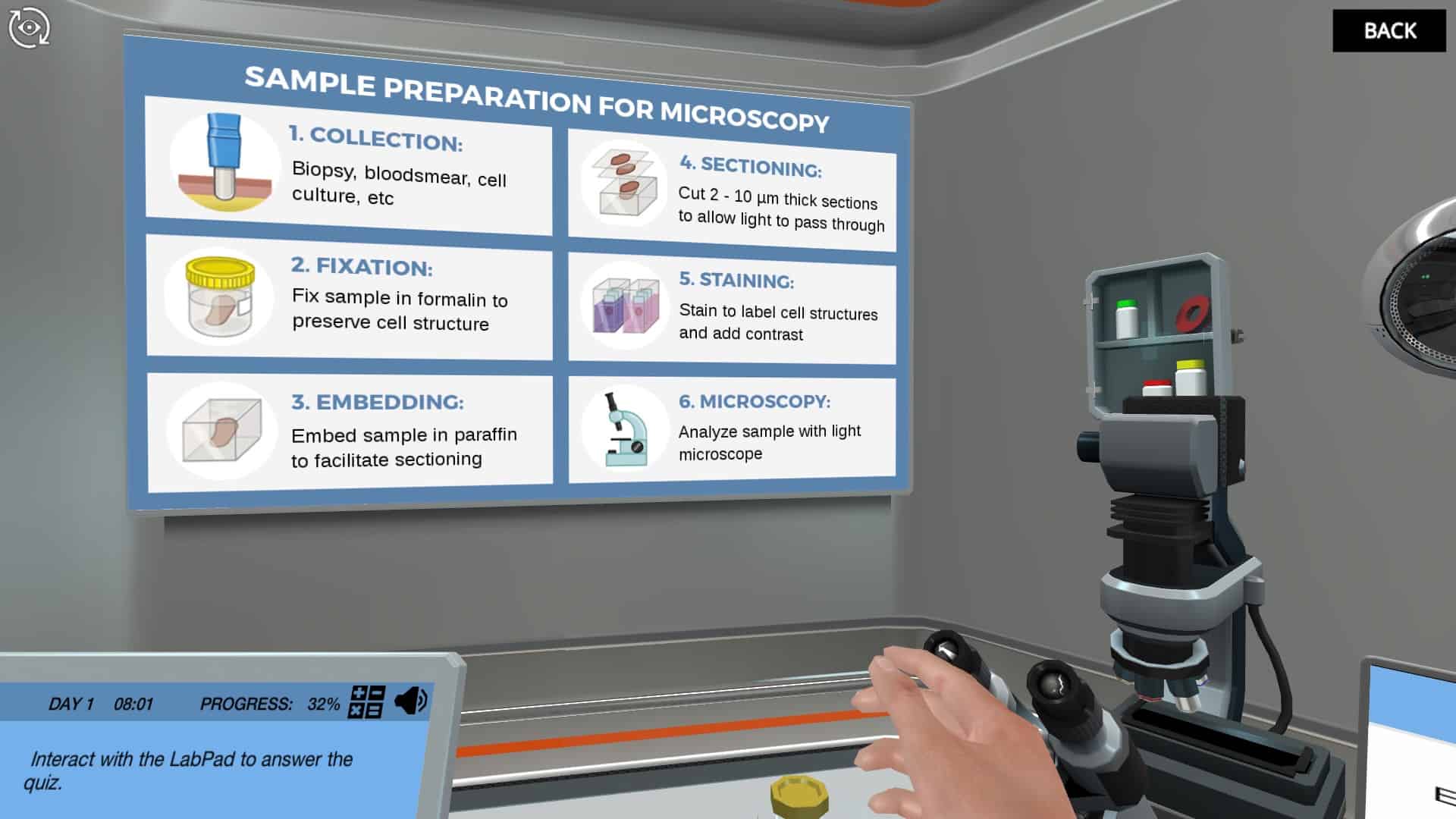 进入虚拟显微镜室以查看组织样品。了解光学显微镜如何放大图像并回答生物学问题。
