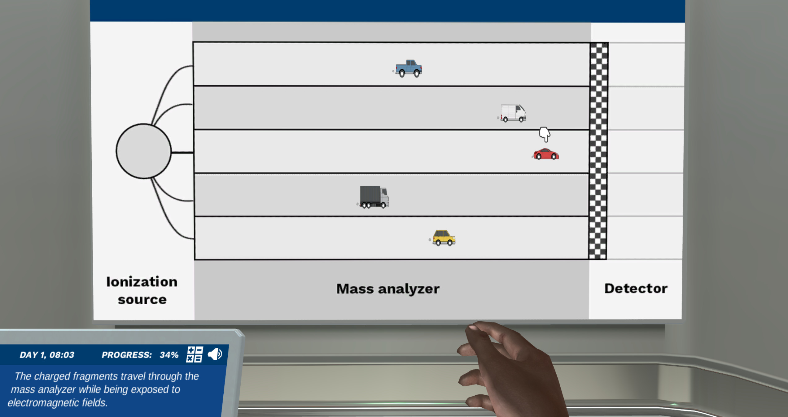 通过参与迷你游戏,开始熟悉质谱仪的不同组成部分。迷人的图像和科学准确的类比将把质谱变成一个可以理解和吸引人的话题!