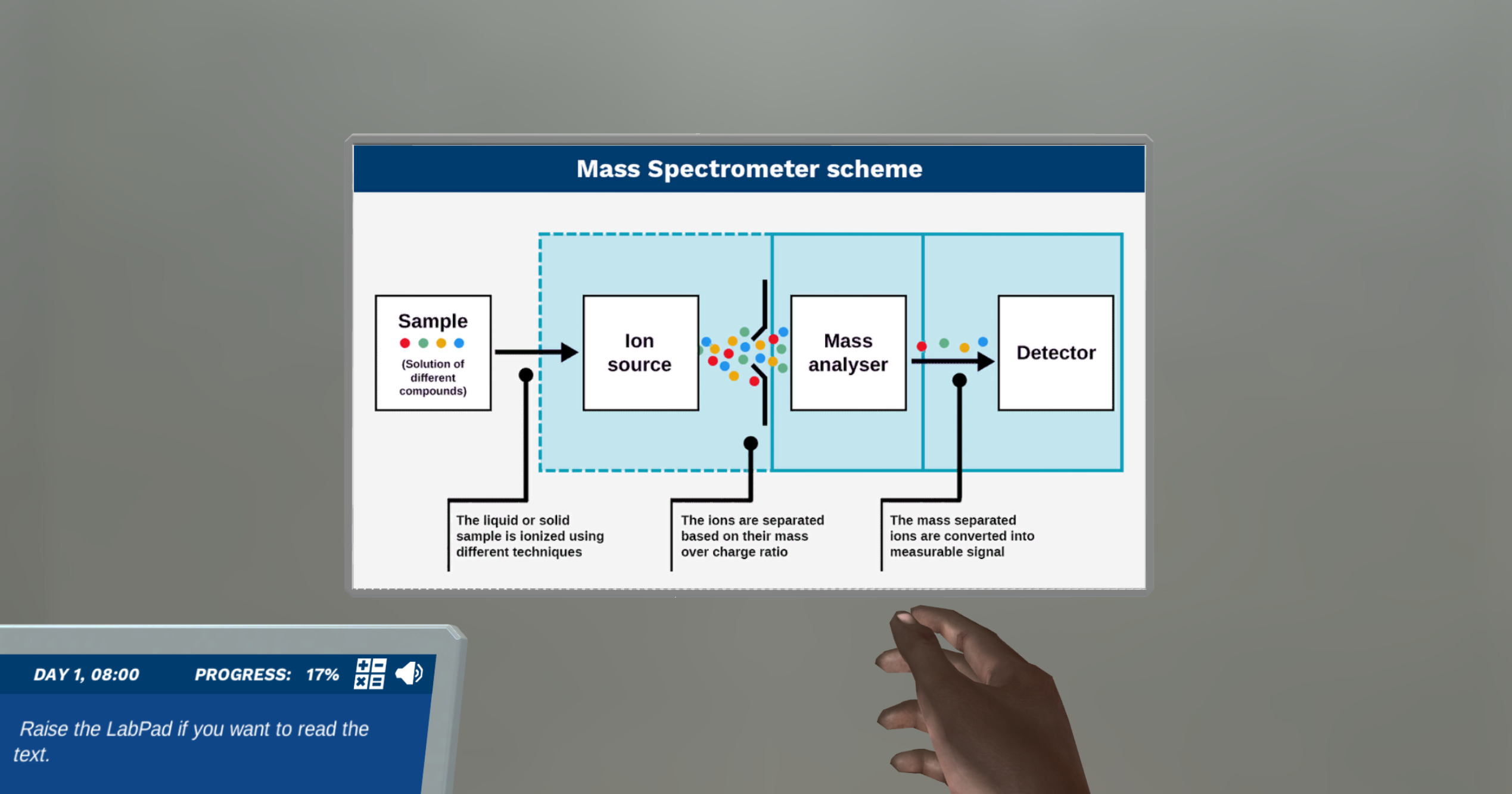 在这个模拟中,你将了解质谱仪的基本功能。你还将通过模拟真实考试的例子来掌握光谱解释。用我们的艺术海报来探索乐器,并获得对三个基本部分的深刻理解。吸引人的迷你游戏将测试你对质量比充电比率的理解。