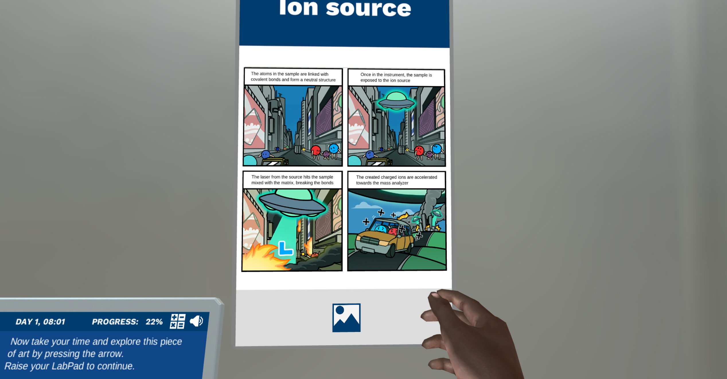 在进行了一个栩栩如生的、有指导的样品制备之后,您将获得对碎片化原理的介绍。这个话题通常很难理解,所以您将在您的人工智能实验室助理Dr. One的指导下,通过不同的海报和测试,以确保良好的理解。