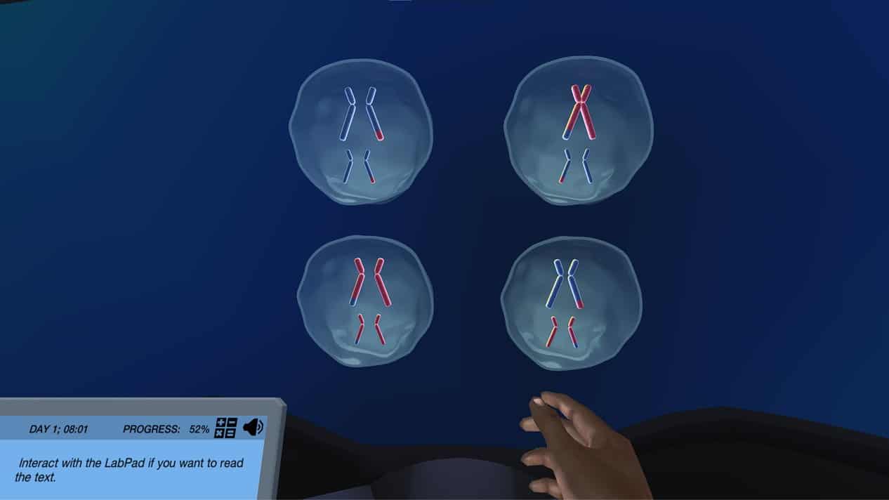 当你观察细胞如何分裂成为生殖系统内的配子时,深入了解遗传的规律。观察染色体复制的细胞。然后看看来自父系和母系染色体的基因是如何在所谓的杂交过程中交换的。这些细胞将继续分裂,直到形成配子。考虑一下这些过程是如何与孟德尔的遗传定律相联系的。