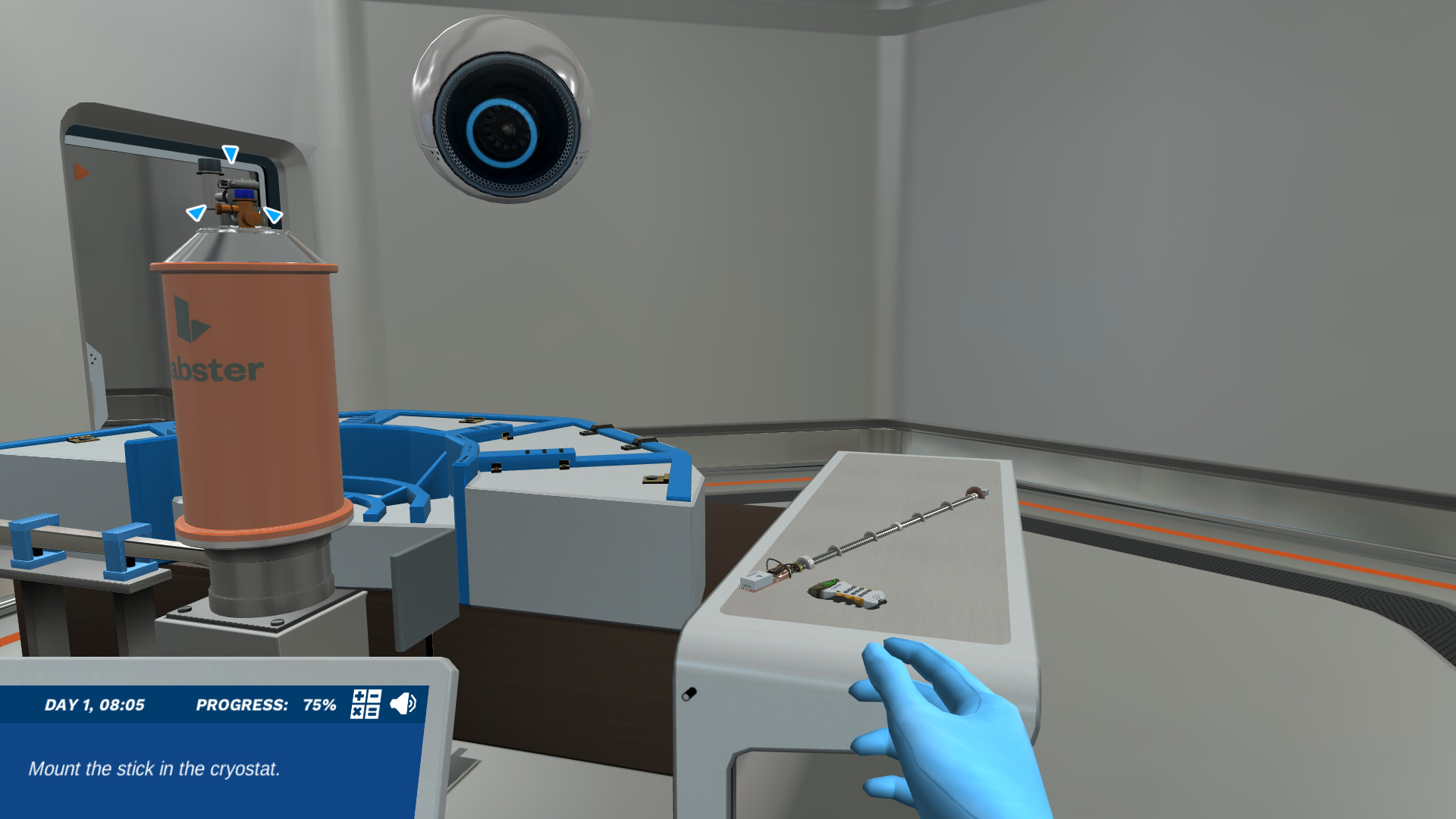 Having the knowledge about neutron diffraction, you will be more than ready to enter the diffraction instrument room. Prepare the sample in the cryostat and observe how the neutron diffraction pattern changes when the battery discharges at various temperatures. Analyze the results and help the scientists continue their work in Greenland.