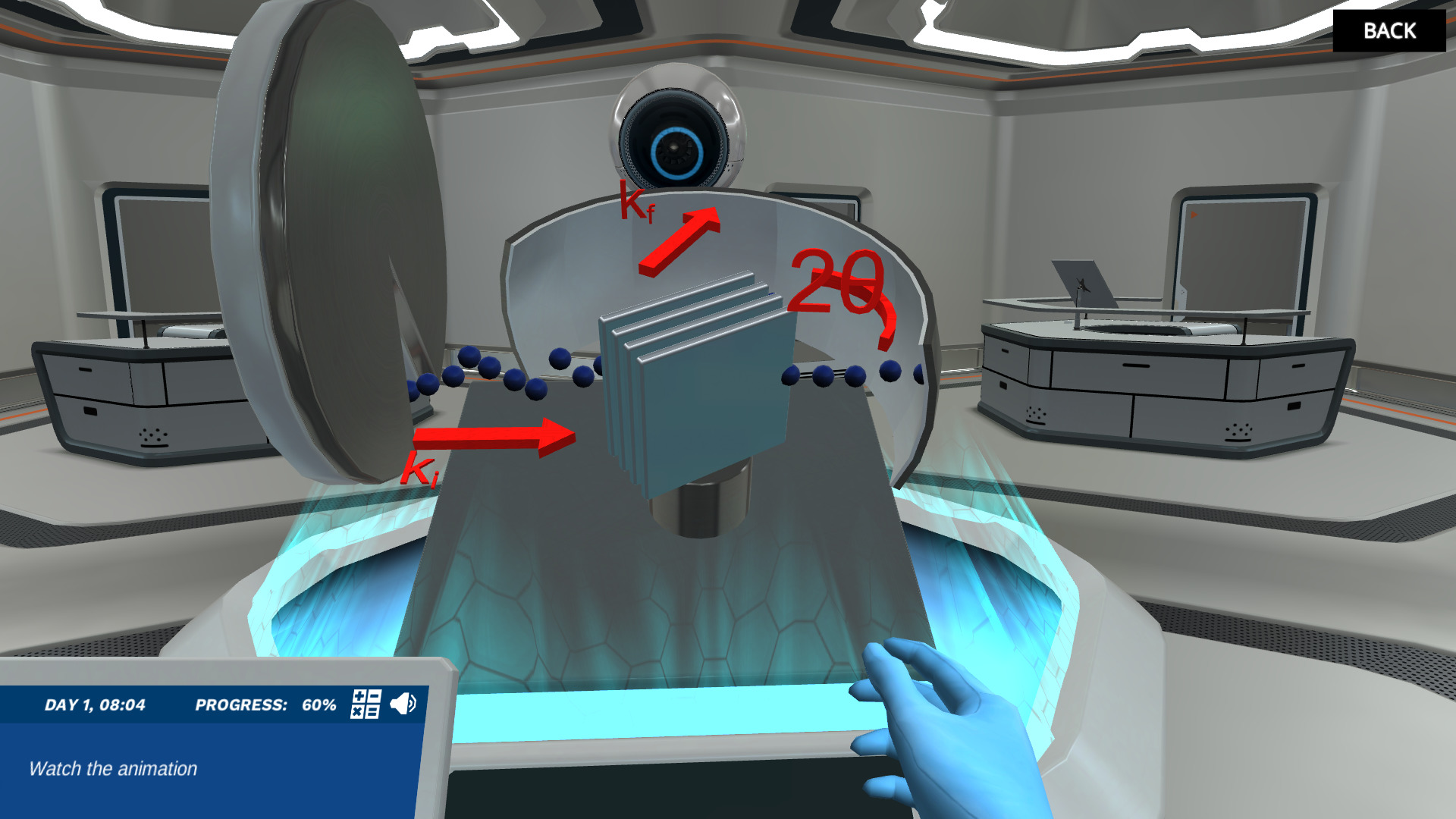 Neutrons are subatomic particles found in the nucleus of most atoms. Through a high-energy process neutrons can be expelled from atoms to produce a free neutron beam that can penetrate through almost any material. In this simulation, you will validate Bragg’s Law and observe how changes in the wavelength of neutrons – and the distance between atomic layers – affect the scattering pattern of neutrons from your sample.