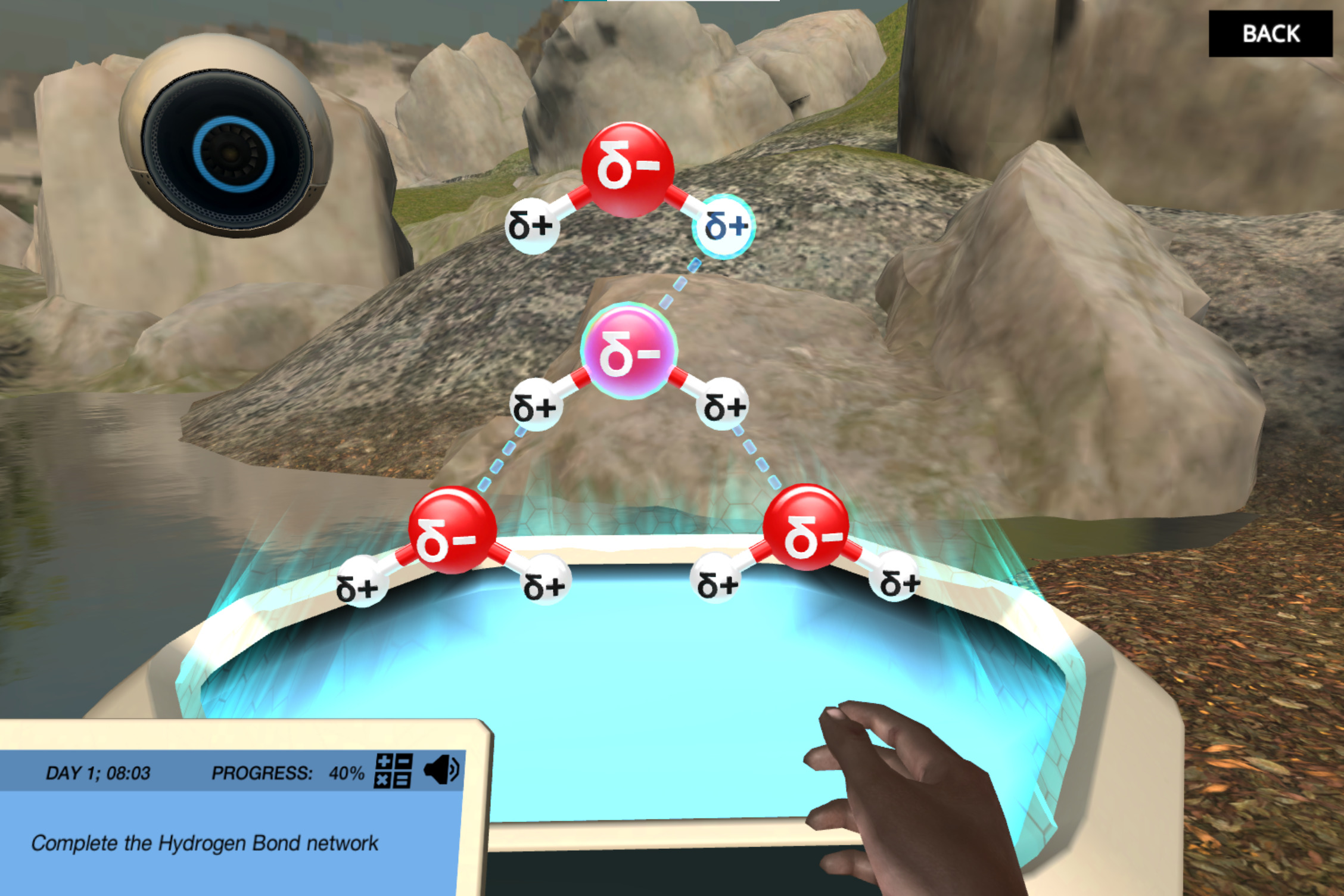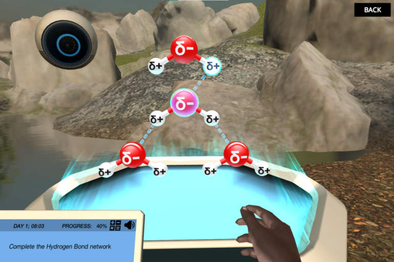 Why does water behave the way it does? It’s all down to charge distribution and polarity! Build your own water molecule on the holotable, and see for yourself how the distribution of charge across the molecule isn’t quite equal. Play around with the molecules to work out how this makes them attracted to each other, and unearth how they form hydrogen bonding networks.