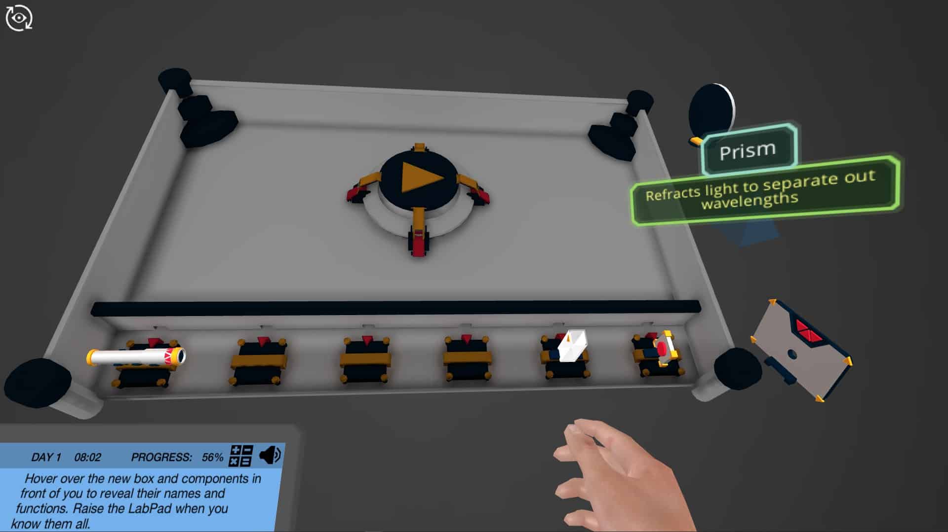 During the spectrophotometer building mission, you can try out different configurations and see how they impact the lightpath used to measure a sample — all without worrying about expensive mistakes. Try out different ideas, and learn as you go! The complexity of the spectrophotometer’s components and function increases over four levels of interaction, guiding you from photometric first principles to data interpretation for protocol optimization.