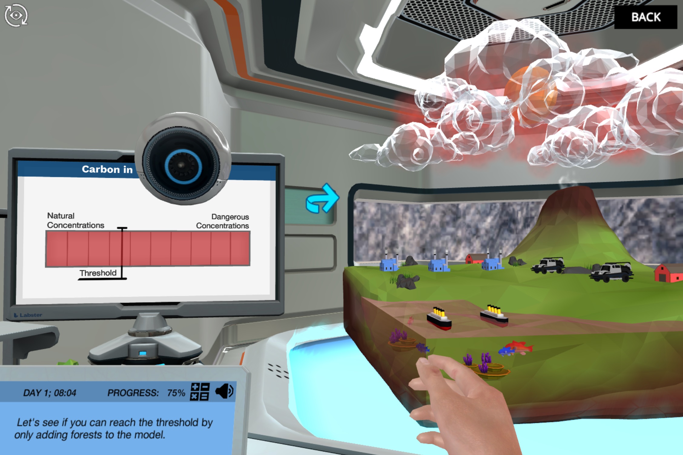 使用3D模型来确定不同组成部分(例如森林,工厂和汽车)如何影响环境中的碳。评估过度浓度的大气碳引起的影响,尤其是海洋发生的事情。找到平衡健康环境和现代生活方式的不同方式。一旦实现了目标,您就可以继续使用该模型来找到尽可能多的解决方案来打击全球变暖,并找出为什么某些解决方案不起作用!